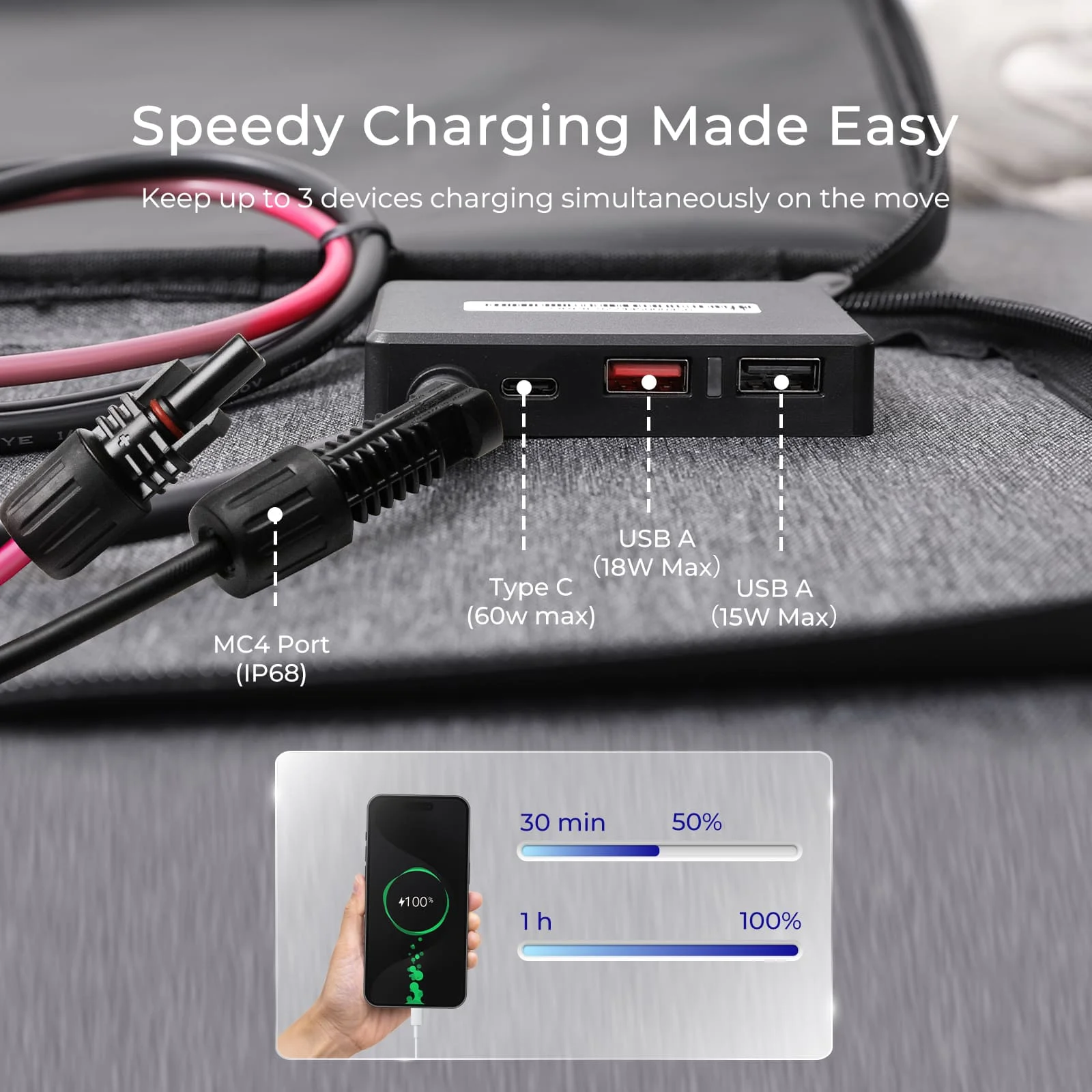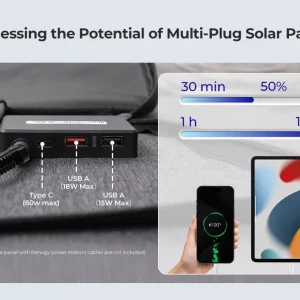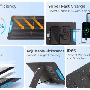 This portable solar panel is built for users who want practical, mobile solar energy. Whether you’re preparing for power outages or enjoying outdoor activities, it provides a convenient way to harness the sun’s power wherever you are.