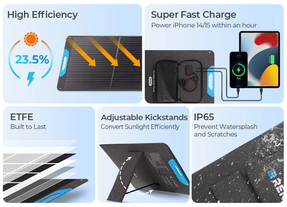 200W Power Output: Generates dependable energy to support portable power stations and devices